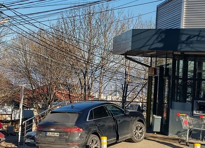 Джип почти се намърда в магазин, БМВ кацна на зебра