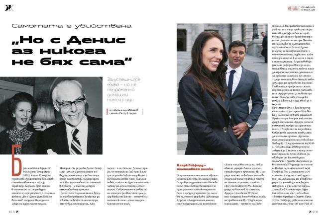 Британската баронеса Маргарет Тачър (1925-2013), която 12 години ръководи Обединеното кралство с непреклонност и корав темперамент, споделя на едно място в спомените си, че да бъдеш министър-председател е самотна работа. „ Но с Денис аз в никакъв случай не бях сама “, споделя Желязната лейди по адрес на брачна половинка си. Майорът от запаса Денис Тачър (1915-2003), с десетилетие по-възрастен от нея, е нейна опора близо половин век. За Маргарет той бил освен това от сателит в живота – а точно добър и себеотрицателен другар. Примерът с хармоничната връзка на своенравната Тачър иде да покаже, че всяка мощна натура има потребност от поддръжка. Ако щете – и от баланс.