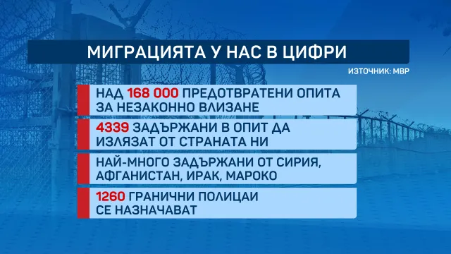 Общо у нас нелегално са се пробвали да влязат над 168 000 души. В опит да излязат от България са хванати 4339, като най-вече са опитите да преминат границата ни със Сърбия.
