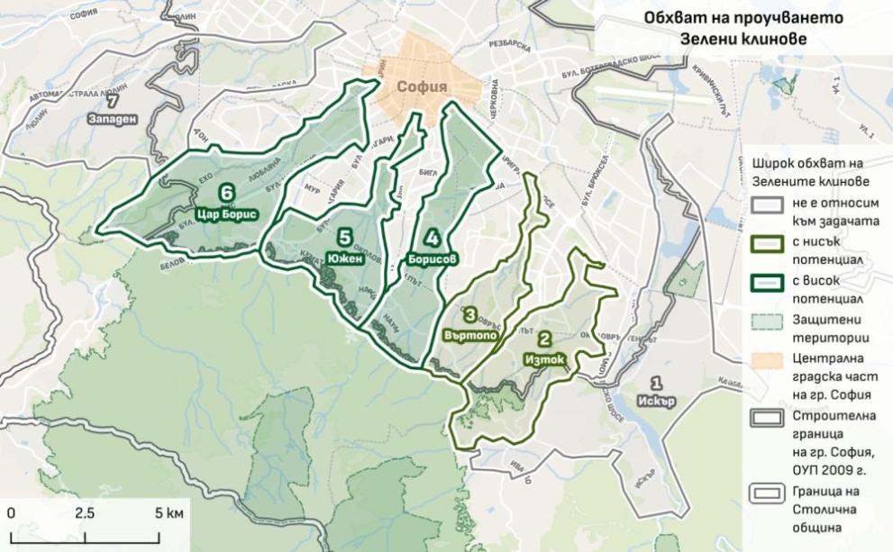 Като първи предпочитан маршрут в проекта е заложена връзката сред НДК и централната част на града с Природен парк „ Витоша ” в региона на кв. „ Бояна ”. Трасето минава през Южен парк, употребявайки и доразвивайки съществуващата пешеходна и велосипедна мрежа, и се свързва със Зеления кръг на София в региона на ул. „ Хенрик Ибсен ”.