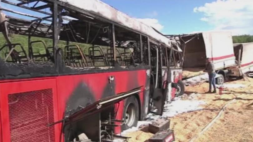 Сблъскали са се камион и пътнически рейс, който е избухнал в пламъци. Шофьорите на двете транспортни средства, както и двама пасажери са починали на място. Има и ранени, някои от които са в тежко положение.