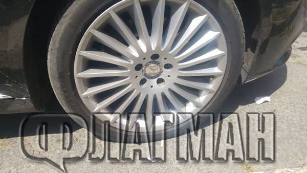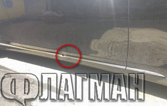 По първокласното возило е стреляно от тротоара. Само три патрона обаче са съумели да обиден Мерцедеса. Един е пробил предната ризница, а по стъклото личат следи от рикошет. Пробита е още предната гума на немския автомобил, както и шофьорската врата.