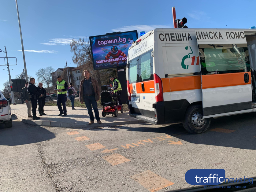 Човек пострада при пътен случай пред Централна гара в Пловдив. Лека кола е блъснала електрическа инвалидна количка, движеща се по бул. „ Христо Ботев ”. За това сигнализира четец на TrafficNews.bg
