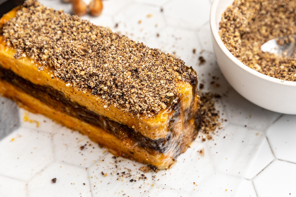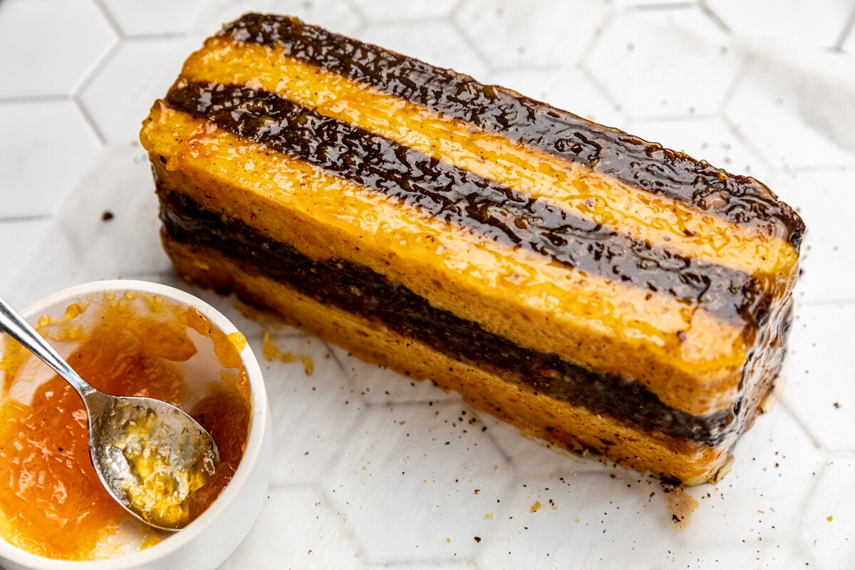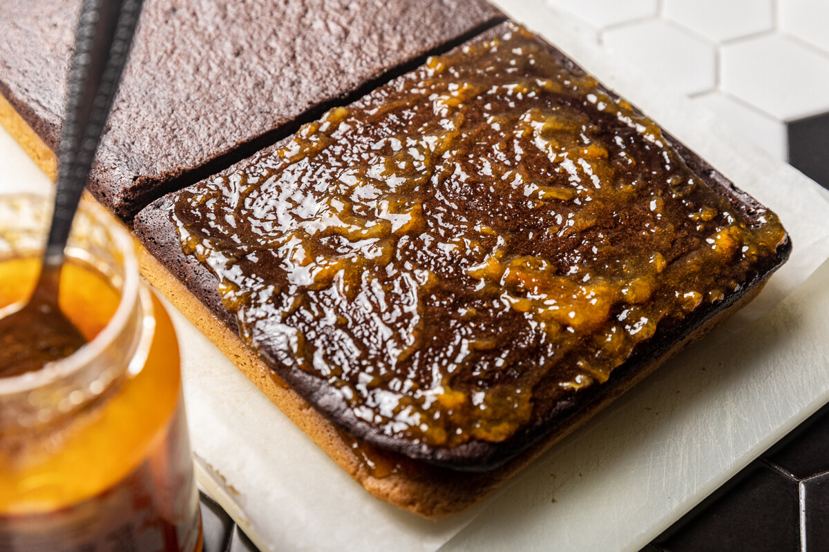 Обърнете лентите шахматно, като ги намазвате със сладкото.