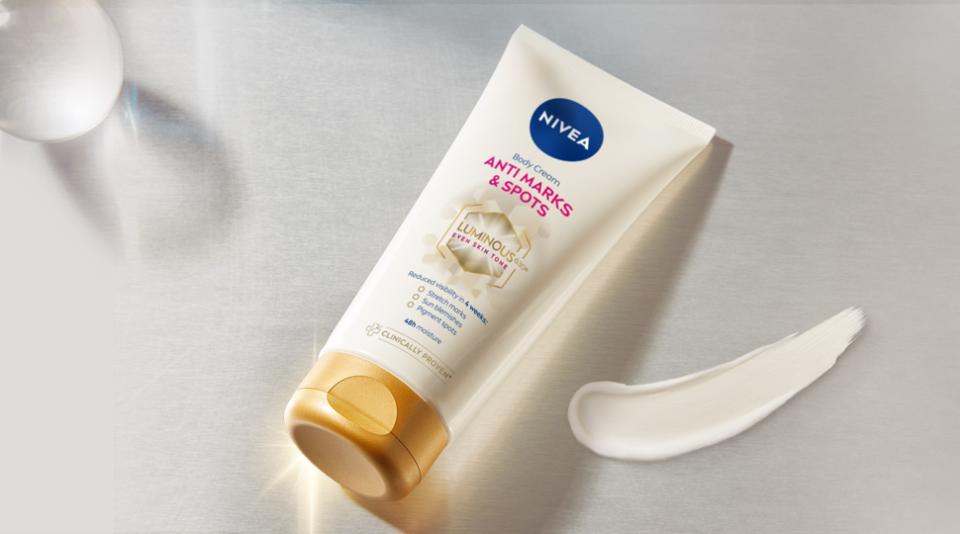 Лосионът за тяло срещу стрии и петна NIVEA Luminous630 демонстрира висока успеваемост при понижаване на видимостта на стрии, слънчеви и пигментни петна. Още по-прекрасната вест? Резултатите са забележими единствено след четири седмици! Със своята грижовна формула „ Skin-Tone Balancing “ и лека текстура, той изравнява другите нюанси на кожата за по-равномерен загар, като в същото време интензивно подхранва кожата и обезпечава 48-часова хидратация.