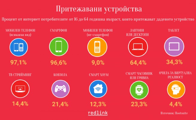 class= " image-source " > Източник: Hootsuite Потребителите към този момент прекарват повече време с телефона си в сравнение с пред тв приемника и мобилните устройства се трансформират в „ първи “ екран.