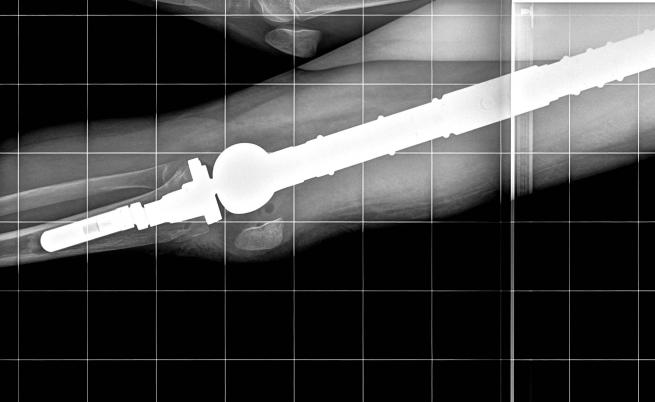 „ Отстранихме цялата бедрена кост и извършихме реорганизация с туморна модулна ендопротеза, направена в Германия”, изяснява доктор Патриков. „ Протезата е бутикова, поръчана и направена, съгласно размерите на костите на пациентката. Тази модулност разрешава и по-късно във времето при нужда да се подменят модулите. Защото пациентката е на 13 години и се допуска, че има още 1-2 години напредък на костта. Така че, в случай че в процеса на израстване оперираният крайник изостане по дължина от другия, ще има опция да бъде унифициран с замяна на един от поставените по средата модули”, изяснява докторът.