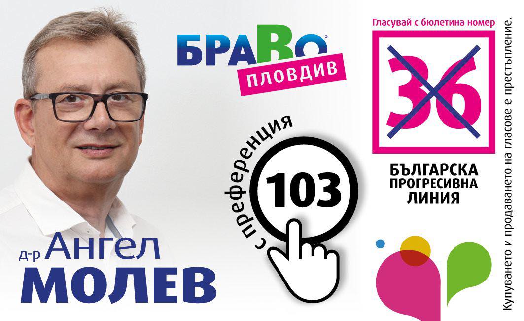 Д-р Ангел Молев е с преференция 103 в листата на " Браво, Пловдив ".