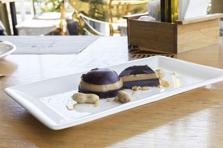 От специфичното му априлско меню ви предлагаме да опитате агнешкия бургер и зелената салата с домати, яйце, рукола, спанак.Опитайте още: десерт от шоколадова хемисфера с фъстъчено масло и черен шоколад