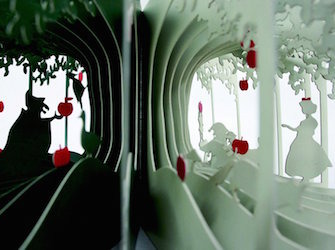 Японският художник Yusuke Oono взема решение, че приказката за Снежанка заслужава своето очевидно приказно царство и сътворява това нежно знамение от хартия. Триизмерна, огромна колкото длан, основана с прецизна лазерна технология, Снежанка предлага снежно 360 градусово величие. Думите са непотребни.