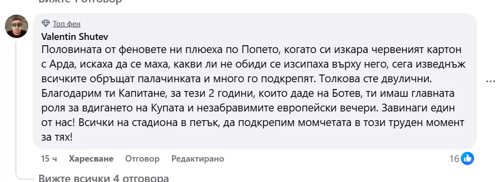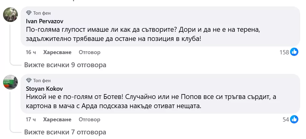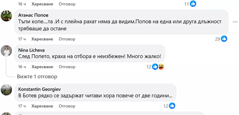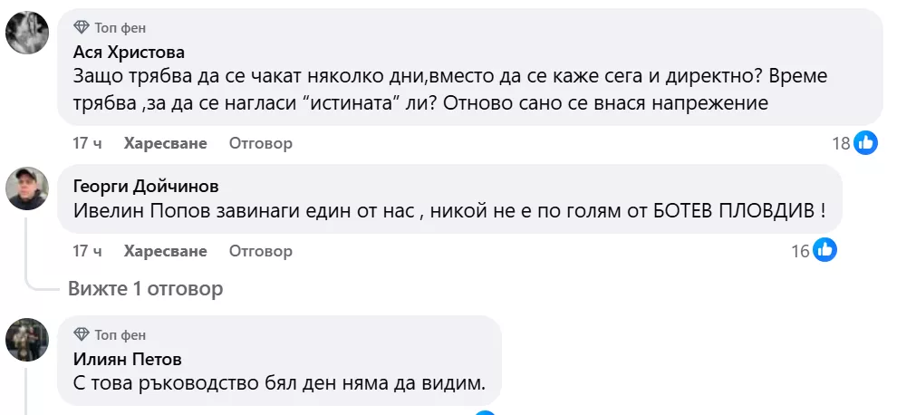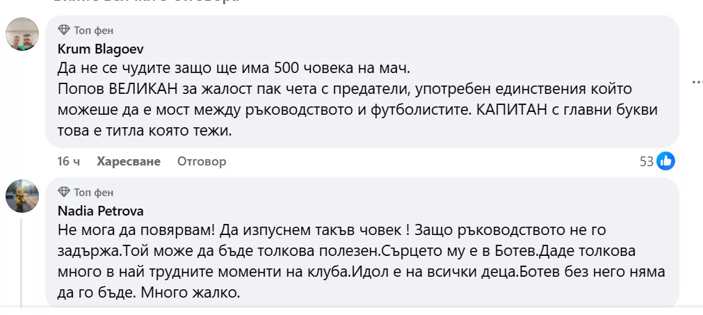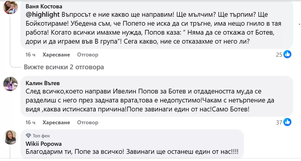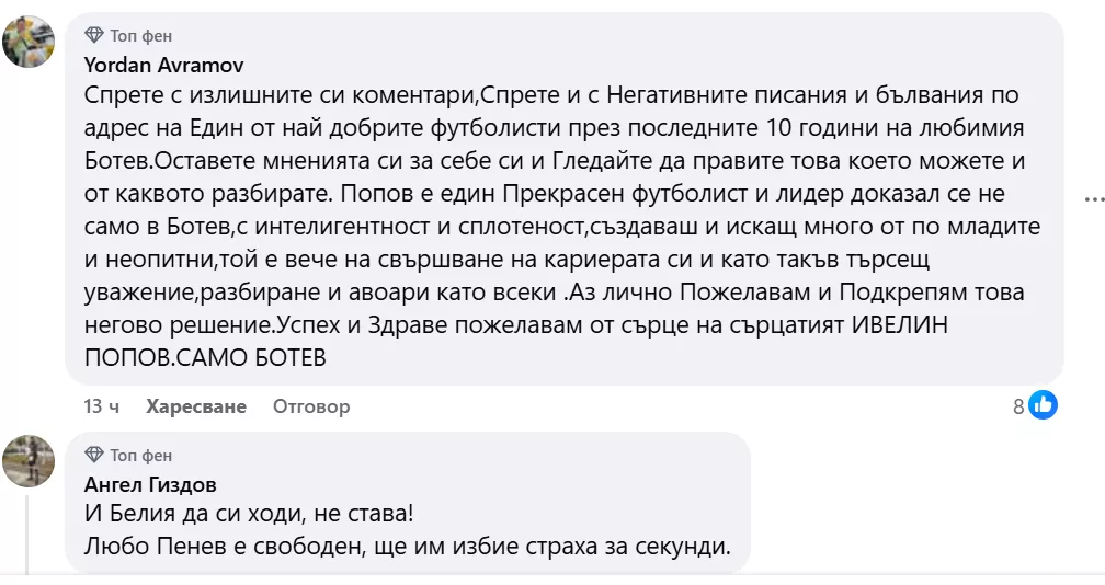 Това са единствено част от стотиците мнения под формалната страница на Ботев Пловдив във Facebook за това, че клубът се разделя със своя капитан Ивелин Попов „ по взимано единодушие “.