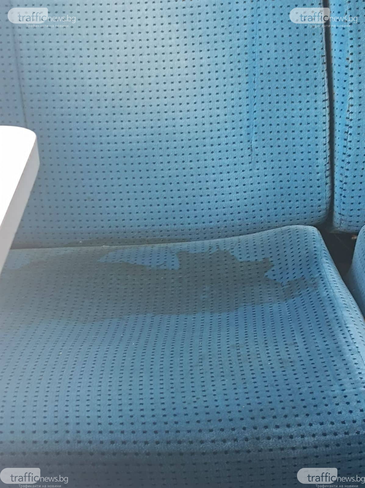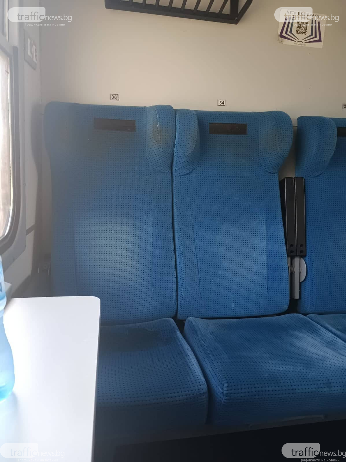 Нервното очакване в композицията било гарнирано и с некомфортно и мръсно купе, демонстрират фотоси на читателя ни. В последна сметка, откакто се качил в бързия трен в 10.30 ч., се добрал до перона на Пловдивската гара малко преди 14 часа.
