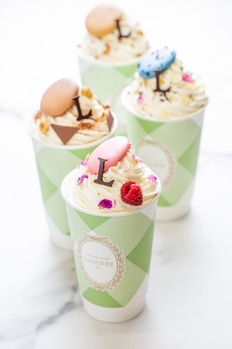 А менюто ни води на странствуване до познати дестинации само че по доста по-оригинален метод. Така да вземем за пример откриваме усетите на известния десерт Ispahan (малина, роза, личи) в напитка. Ladurée основава четири „ сладкарски “ латета (latte), с авторски предписания, които внасят автентичност в този нов обред на дегустация. Освен Latte Ispahan към този момент можете да опитате Latte Plaisir sucré (шоколад, лешници), Latte Marie-Antoinette (цитрус, роза, мед), Latte Roi Soleil (бергамот, ревен, карамел).