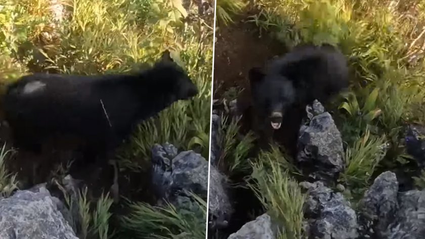 Спиращият сърцето миг, в който алпинистът, който се намирал в планината Футаго в Япония, се натъкнал на черна мечка и бил заставен да се бори за живота си.