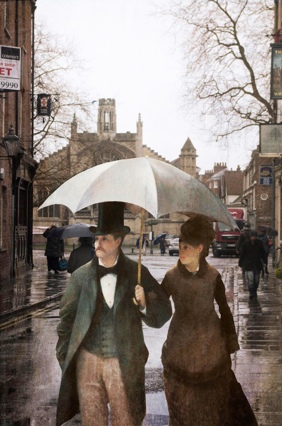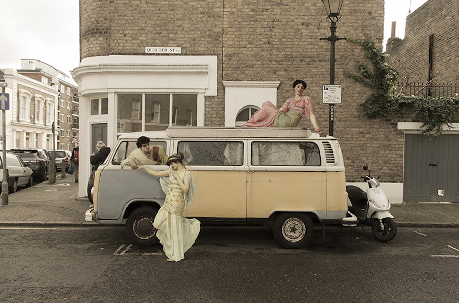 Да се съчетаят типичен облици от най-хубавите шедьоври на изобразителното изкуство с модерния образ на актуалния свят е концепция по едно и също време занимателна и завладяваща. Контрастът е впечатляващ и е може би най-хубавият метод да се изясни смисъла на думата „ анахронизъм “.