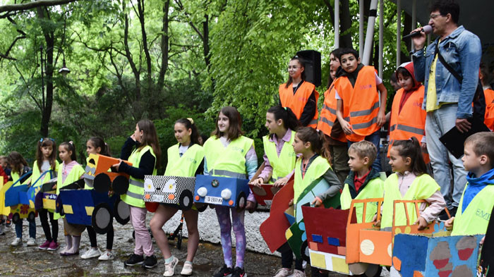 Деца се впуснаха в куп игри по време на градски празник за безопасност на движението по пътищата