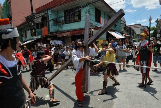 Дълбоко вярващи се оставят да ги разпънат на кръст, други се самобичуват до кръв, демонстрирайки разкайване за греховете си: филипинците означават Разпети петък с обичайните кръвопролитни подиуми, свидетелстващи за религиозния жар на локалните католици, които са огромен дял от популацията, съобщи Франс прес.