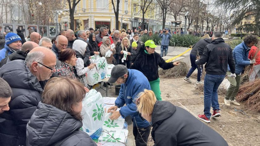 Дълги опашки за безплатни дръвчета се извиха в центъра на Бургас