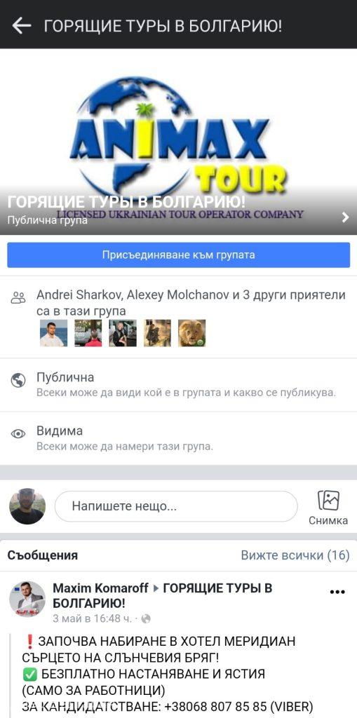 А това е страницата, по-точно групата, на компанията му АНИМАКС ПРО ЕООД, която персонално той управлява: