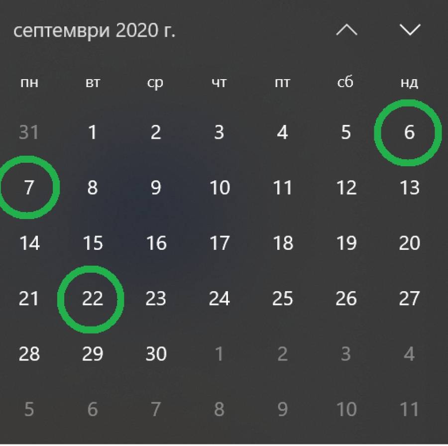 Официални почивни дни за месец СЕПТЕМВРИ 2020