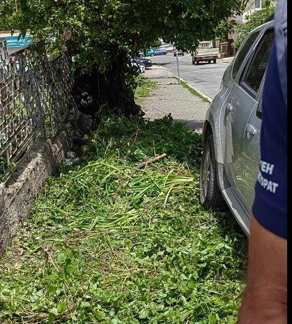 " Искаме да ви срещнем с зародилия проблем! В момента, в който почистваме тротоара, намиращ се на улица " Лешникова гора ", тъкмо против " Суджорно ", пристигнаха чиновници от Столична община с автомобил и желаеха да ни създадат акт по тази причина, че чистим тротоара от обраслите растения!
