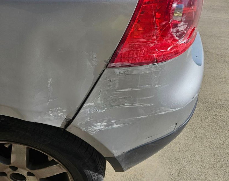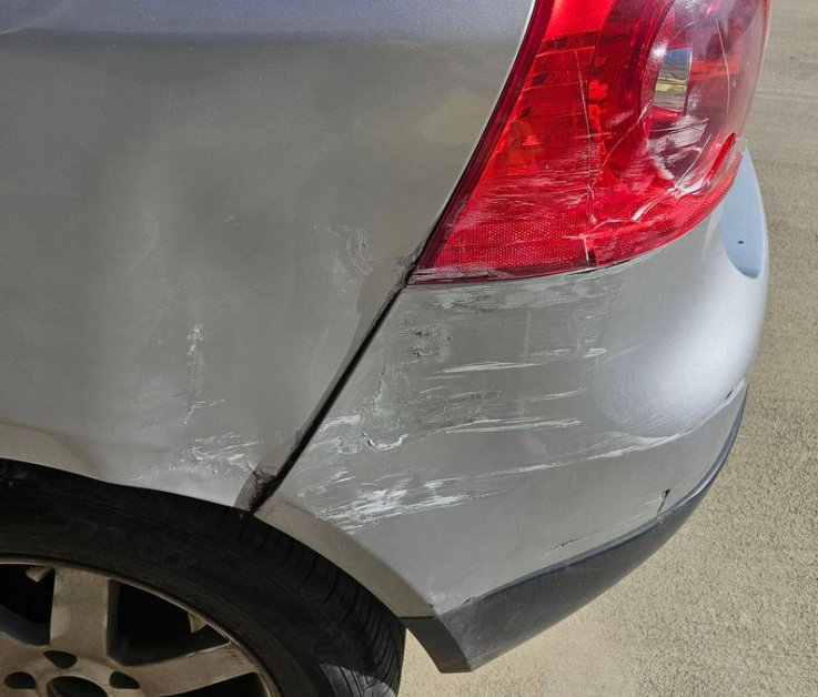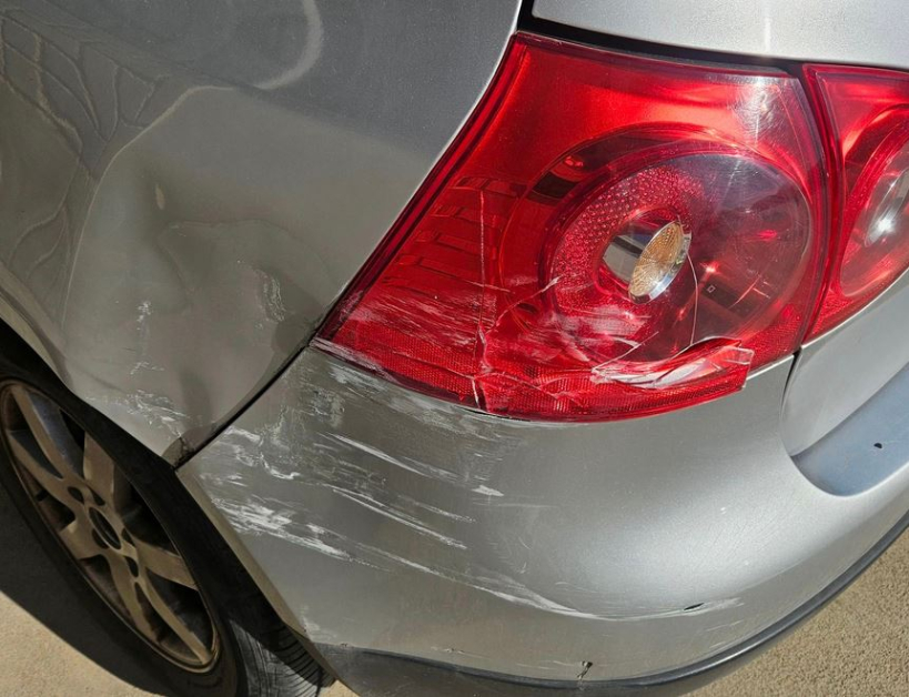 Ангелина разгласява и фотоси, илюстриращи вредите. На тях се вижда пукнатия стоп на возилото, както и зажулените задна ризница и калник.