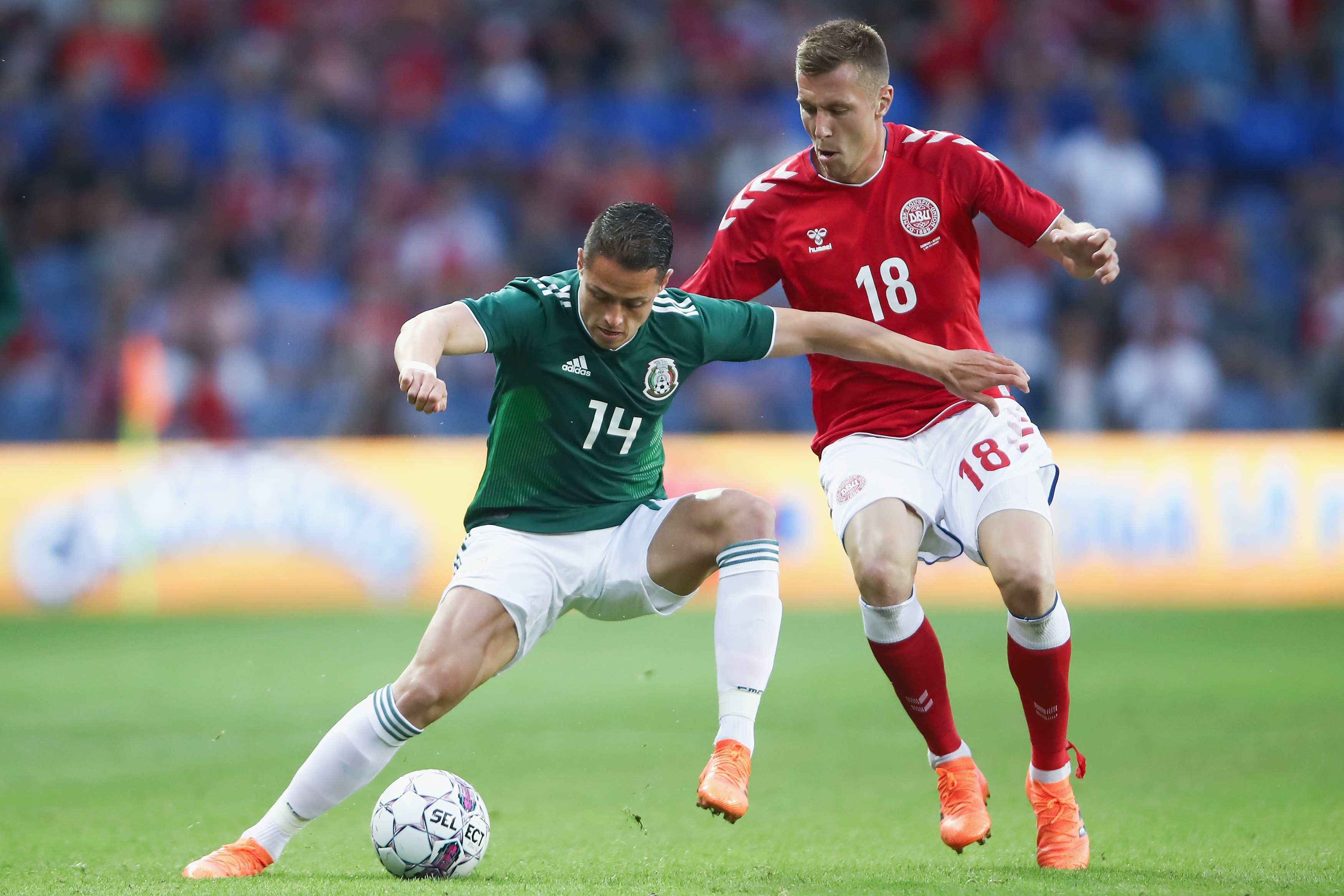 Първото полувреме дания имаше леко предимство, като на два пъти Кристиан Ериксен насочи опусни далечни удари, които обаче не откриха очертанията на вратата. В 36-ата минута обаче и Мексико бе покрай гола след изстрел на Андрес Гуардадо от фаул, който срещна гредата.