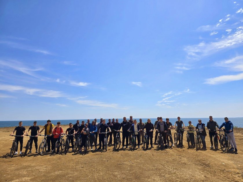 Кметът на Приморско Иван Гайков се снима с учениците от града върху терена в местността Боруна, който беше трансфериран безплатно на общината с решение на Министерски съвет.