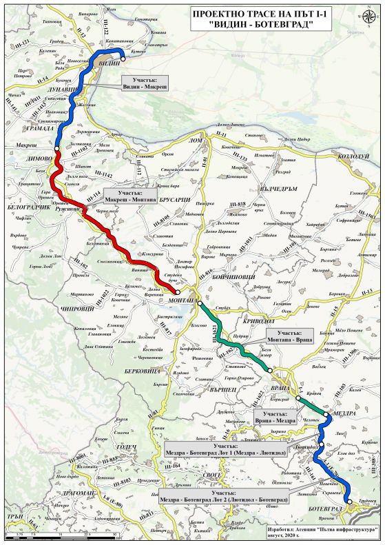 „ Автомагистрали “ ЕАД ще построи 65,8 км от път I-1 Видин-Ботевград, в сектора сред пътен възел „ Макреш “ и обходния път на гр. Монтана, заяви Агенция „ Пътна инфраструктура “ (АПИ).