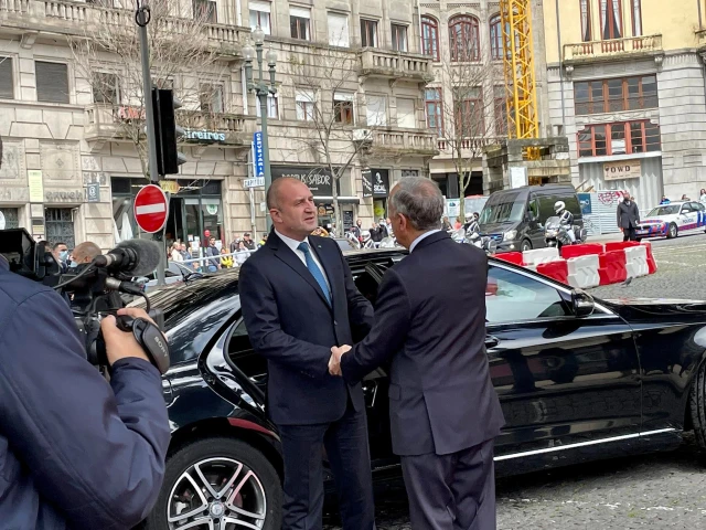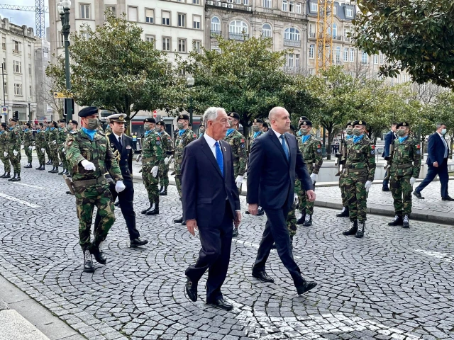 Държавният глава Румен Радев бе посрещнат от своя сътрудник Марсело Ребело де Соуза с военни почести в центъра на Порто.