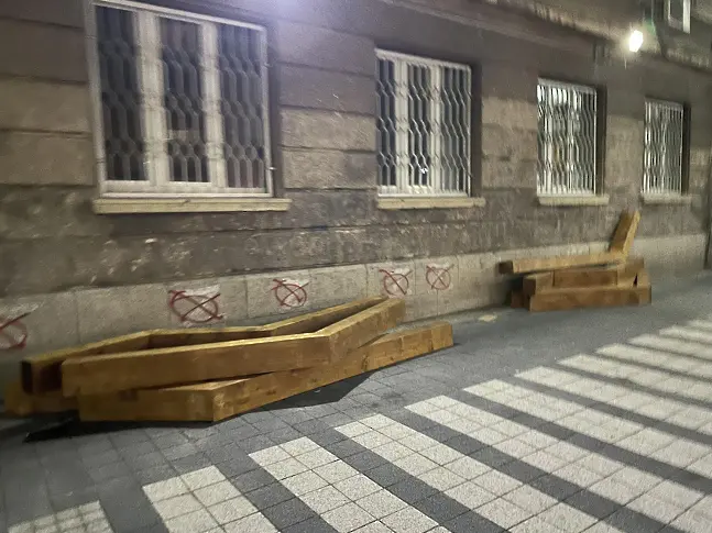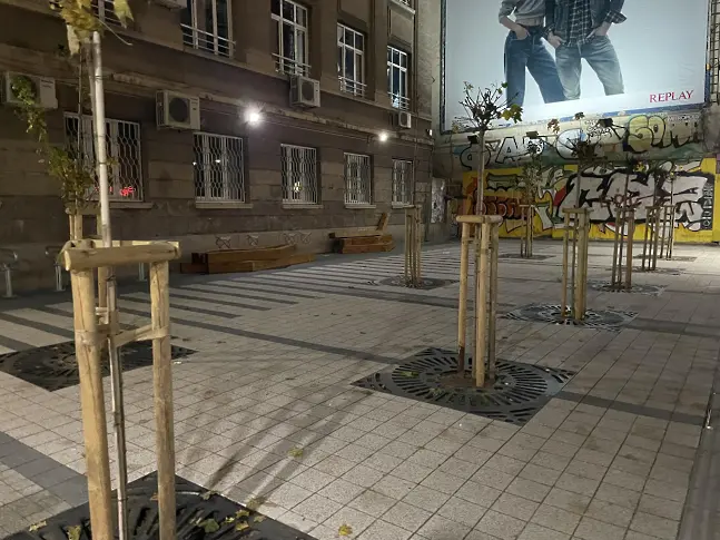 Дървените греди, които украсяваха тротоара на улица „ Цар Иван Шишман “ в София бяха отстранени довечера.