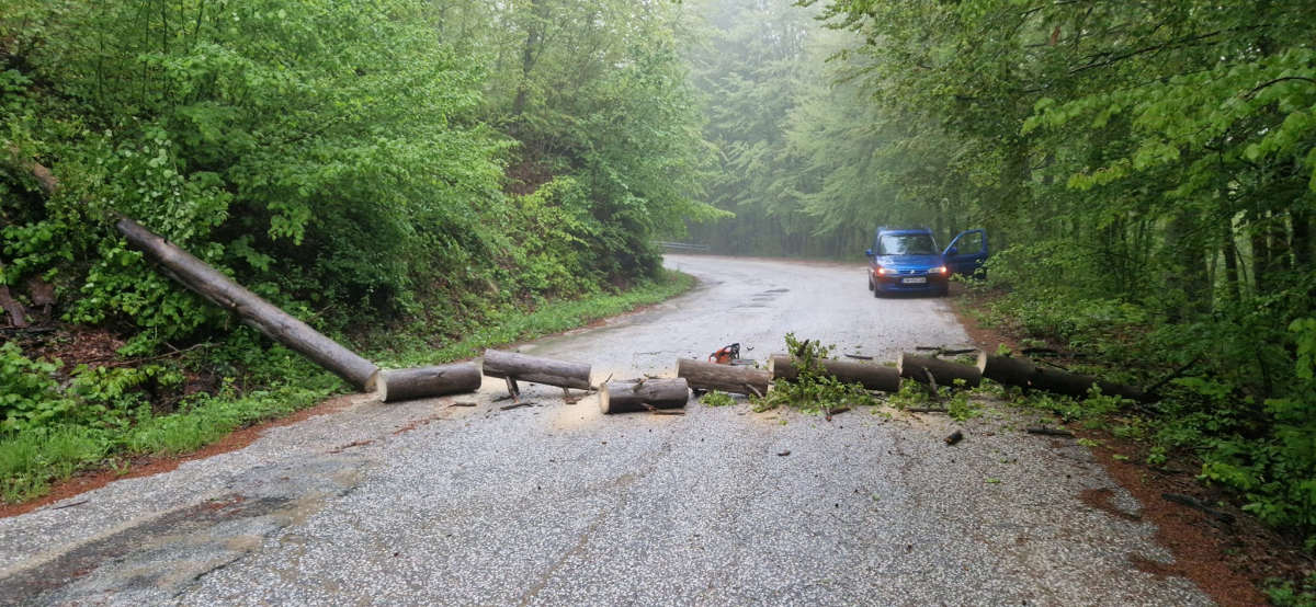 Дърво е паднало тази заран на път в Родопите. То е блокирало краткотрайно пътната права.