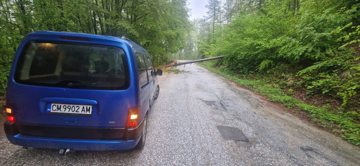 Дърво падна на път в Смолянско, ето какво направи шофьор СНИМКИ