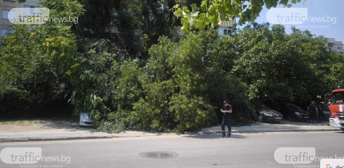 Дърво падна върху няколко автомобила на ул. " Пере Тошев " в Кючук Париж, научи TrafficNews .