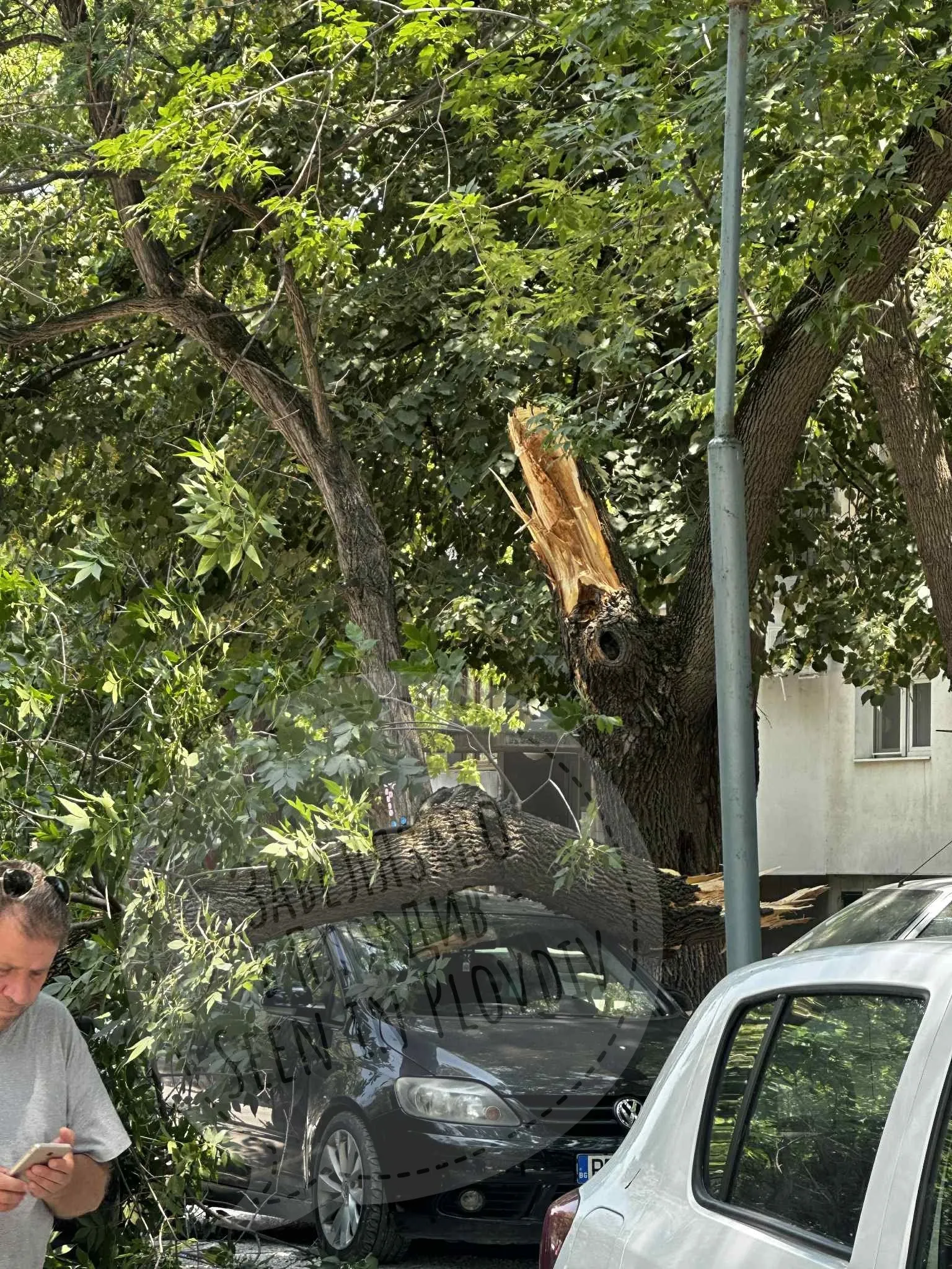 Дърво падна в Пловдив, нанесе щети по 4 автомобила СНИМКИ