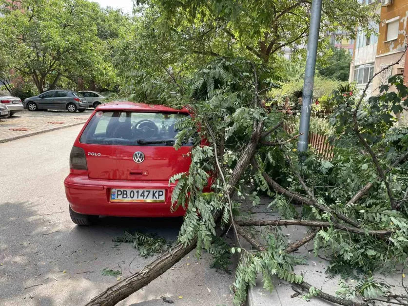 Дърво се стовари върху паркиран автомобил в ж.р. „ Тракия “. Това алармира четец на TrafficNews . Инцидентът е настъпил на многолюден тротоар, а минути преди по него са минали майка с дете, описват очевидци. За благополучие, няма потърпевши хора, само че клонът е нанесъл вреди върху автомобила.