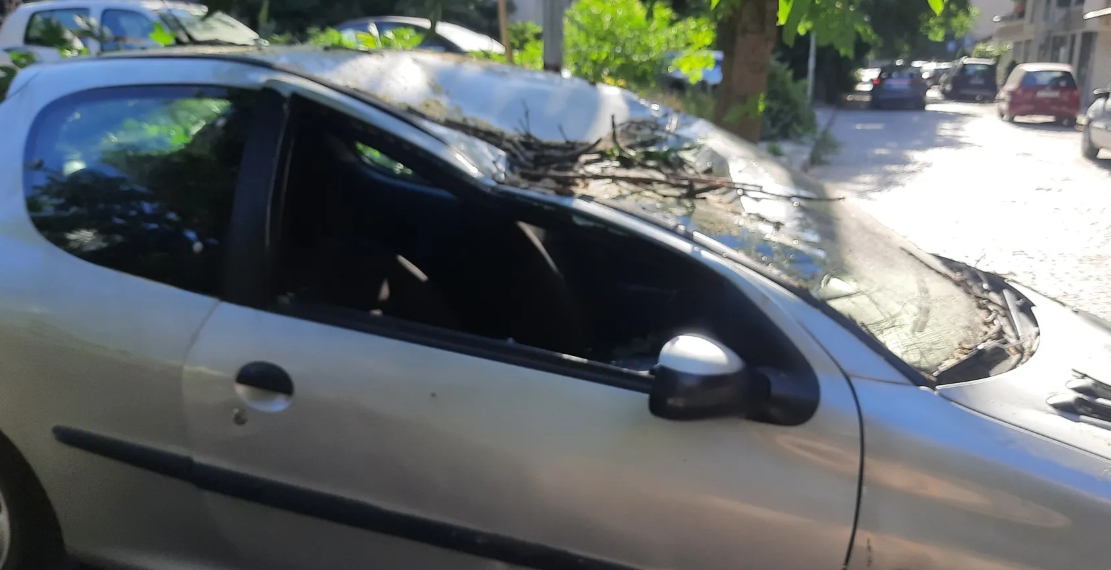 По първична информация клон се отчупил и безусловно пробили задната част на паркиран под дървото автомобил. Други два е непосредственост също са със съществени материални вреди – изпочупени стъкла и развален таван.