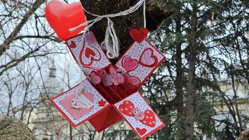 Над 150 собственоръчно направени " валентинки " украсиха Дървото на влюбените в центъра на Русе на днешния 14 февруари. Емблемата на Деня на влюбените пред Доходното здание в крайдунавския град " разцъфна " с красиви персонални послания за любовта и другарството.