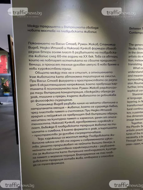 " Даваме старт на едно от най-значимите събития в културния календар на града, която е мост сред поколенията. В Пловдив има сериозен пиедестал от огромни имена в изобразителното изкуство, само че и нова генерация, която носи техния завет. Има го знакът, че приемствеността е допустима и планът " ТрадАРТ – живописта преди и в този момент " го потвърждава. Поздравления за целия екип ", сподели зам.-кметът по просвета, археология и туризъм Пламен Панов по време на откриването на " ТрадАРТ – живописта преди и в този момент " в изложба " Капана ".