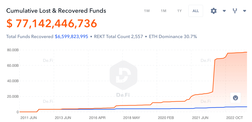 De.Fi Rekt Database разгласява отчет, в който се показва, че през месец юли в DeFi бранша са били претърпени загуби в размер на $389.82 милиона заради хакерски офанзиви и произшествия с експлойти. По този метод общата сума на кумулативните загуби надвиши границата от $77 милиарда.