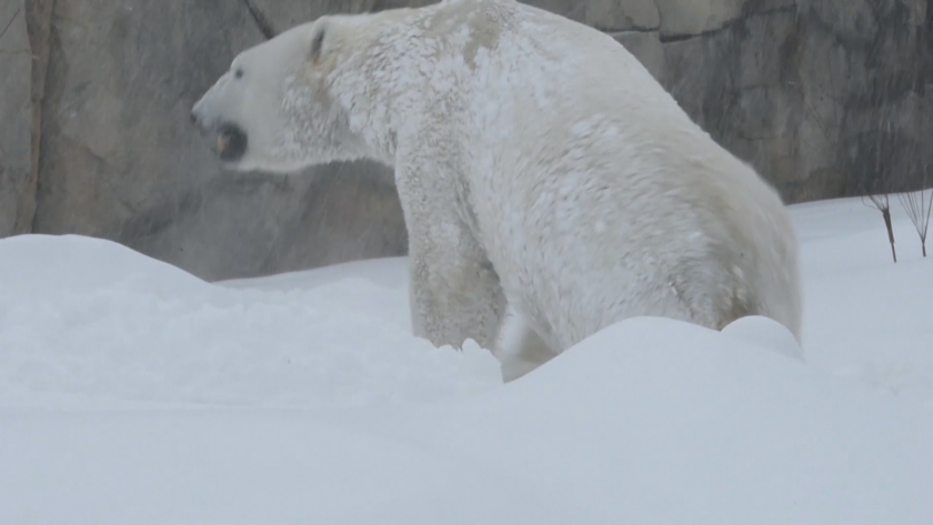 Полярната мечка Хъдсън от зоопарка в Чикаго обаче няма нищо срещу да поиграе в снега. Амурският тигър също се забавлява.