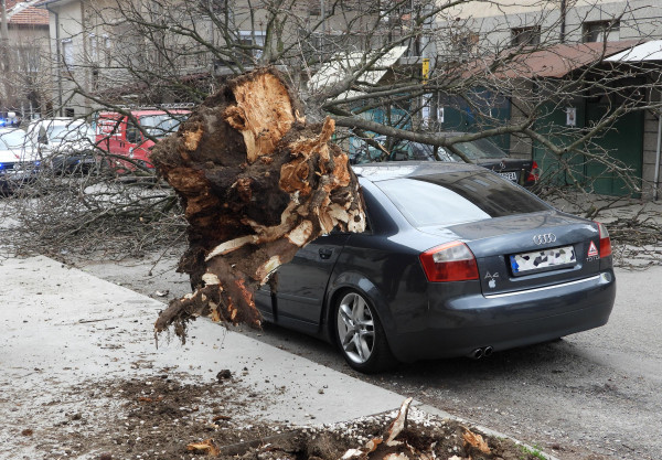 Клоните на дървото са паднали и върху различен автомобил, само че той не е потърпевш.