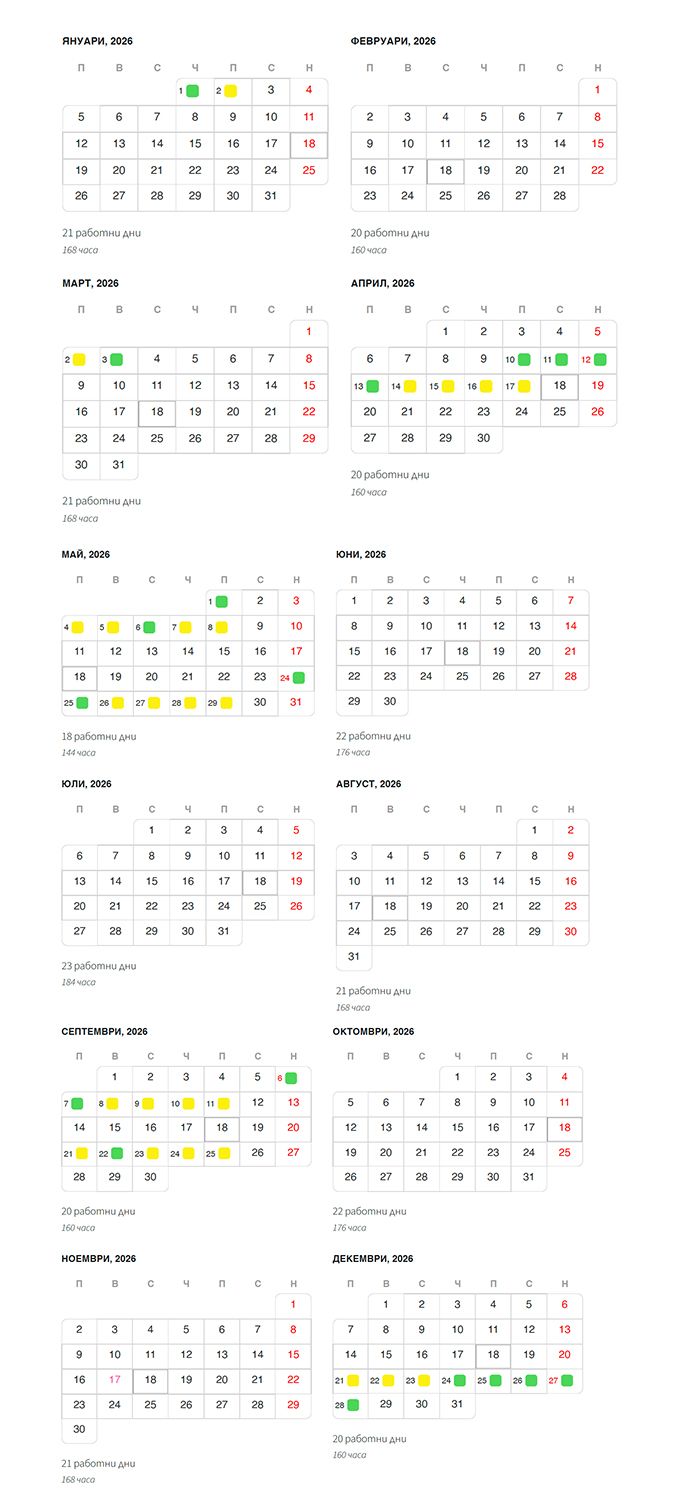 И в случай че и ти към този момент подреждаш календара за идната година, имаме отлична вест – формалните почивни дни за 2026-а са ясни.