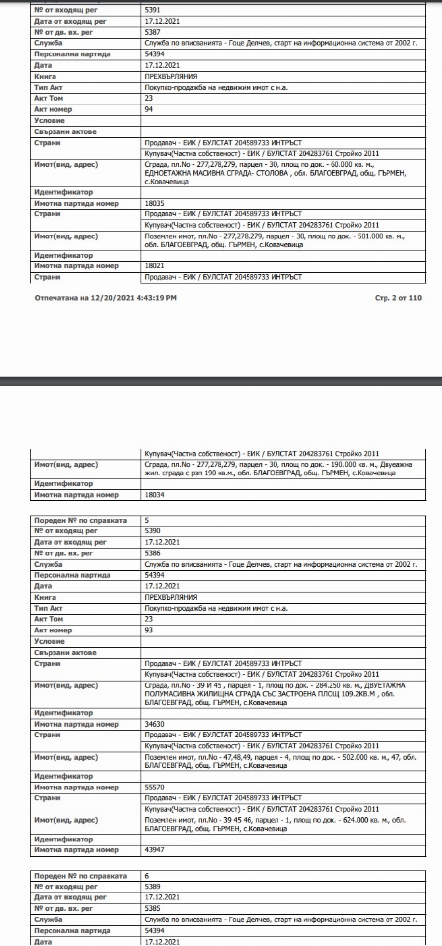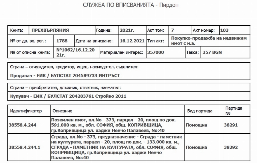 Купувачът на всички парцели е компания „ Стройко 2011 “ ЕООД.