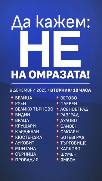 Вълна от митинги „НЕ на омразата“ ще залее страната във вторник вечер