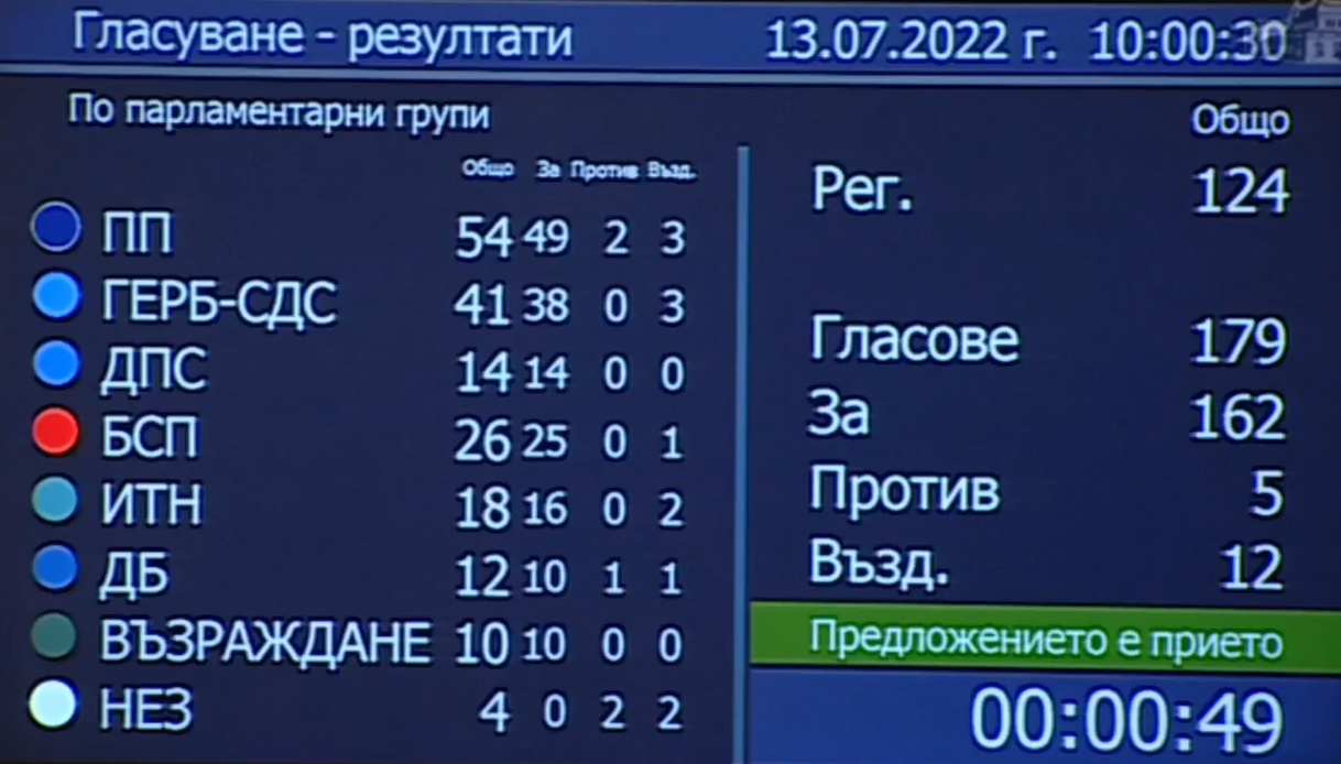 От 179 народни представители, които дадоха своя избор, 162-ма гласоподаваха " за ",  5 " срещу " и 12 " въздържал се ".