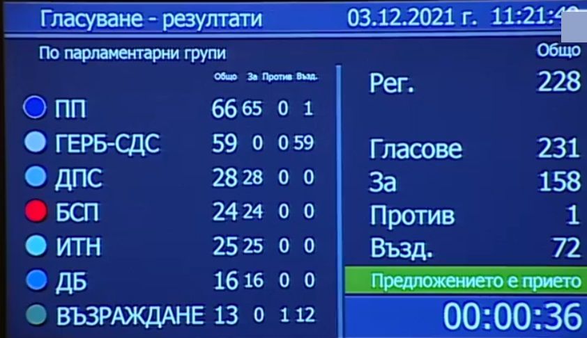 За Никола Минчев гласоподаваха 158 депутати, един беше срещу, а 72-ма народни представители се въздържаха.