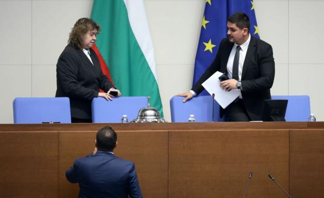 Председателят на Народното събрание Наталия Киселова прекъсна за 15 минути дебатите и даде отмора. До тук се стигна откакто Радостин Василев от парламентарната група на " Морал, единение, чест " (МЕЧ), основатели на вота, стартира да чете претекстовете за желаната оставка на държавното управление.