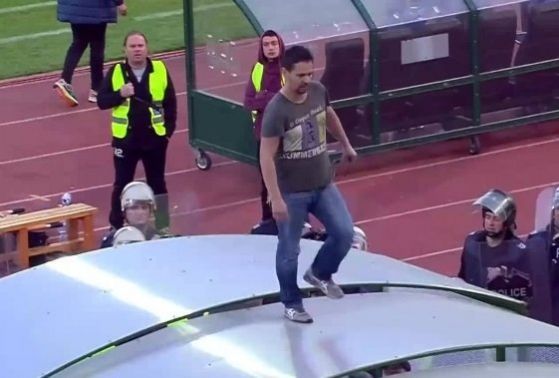 Освен за този противен случай, сътрудниците в чужбина пишат и за фена на ЦСКА, който напълно умерено се разноски по тунела за футболистите.