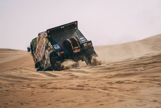 При камионите, неналичието на Алеш Лопрайс, който напусна ралито, новият водач е Янус Ван Кастерен с Iveco, който има преднина от 22 минути по отношение на Мартин Ван Ден Бринк със същата машина. Трети е Мартин Мачик, още веднъж с Iveco, който изостава с над 50 минути от лидера.